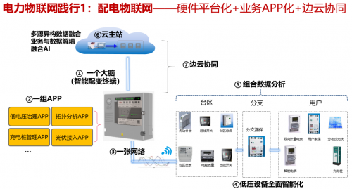 配電物聯(lián)網(wǎng):基于“配電網(wǎng)+物聯(lián)網(wǎng)”的融合理念,采用“軟件定義終端”和開放邊緣計(jì)算架構(gòu),實(shí)現(xiàn)“硬件平臺化+業(yè)務(wù)APP化+邊云協(xié)同”,滿足配電網(wǎng)面臨的海量終端即插即用接入、新業(yè)務(wù)靈活擴(kuò)展、多元異構(gòu)數(shù)據(jù)融合、新業(yè)務(wù)快速上線等需求,有力支撐停電故障研判、配電設(shè)備狀態(tài)管控、電動汽車充電有序控制等業(yè)務(wù)發(fā)展,使配電網(wǎng)具備更強(qiáng)的資源配置能力和更快的需求響應(yīng)速度。