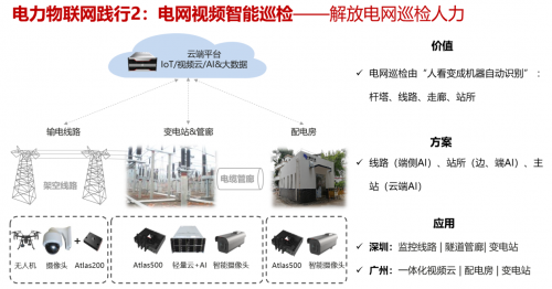 電網(wǎng)視頻智能巡檢:應(yīng)用基于華為昇騰AI芯片的Atlas系列產(chǎn)品方案,匹配桿塔、管廊、站所不同場景,通過對設(shè)備異常、環(huán)境風(fēng)險(xiǎn)、人員違規(guī)等的AI識別,將風(fēng)險(xiǎn)信息及時傳遞給視頻云中心,做到風(fēng)險(xiǎn)及時發(fā)現(xiàn),幫助客戶實(shí)現(xiàn)電網(wǎng)巡檢 “由人看變成機(jī)器自動識別”,解放電網(wǎng)巡檢人力,提高運(yùn)維效率,有效保障電網(wǎng)的安全穩(wěn)定運(yùn)行。