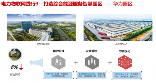 綜合能源服務(wù)智慧園區(qū):華為在深圳坂田基地和東莞南方工廠打造了基于綜合能源服務(wù)的智慧園區(qū),實(shí)現(xiàn)園區(qū)能效透明可視,能耗漏洞有效挖掘,能耗異常自動告警。通過大數(shù)據(jù)&AI技術(shù)的使用,可輸出系統(tǒng)運(yùn)行優(yōu)化建議,包括對空調(diào)冷機(jī)動態(tài)調(diào)優(yōu),光伏智能并網(wǎng),基于用能預(yù)測的精準(zhǔn)購電等,優(yōu)化多能源的綜合配置能力;