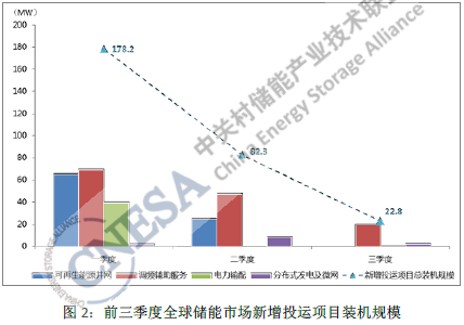 2016年三季度,中國新增投運(yùn)項(xiàng)目3個(gè),裝機(jī)規(guī)模1.5MW,同比增長50%,環(huán)比今年二季度下降了87%。項(xiàng)目全部集中在分布式發(fā)電及微網(wǎng)領(lǐng)域。