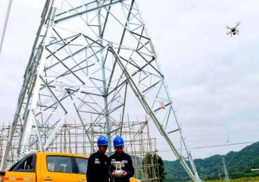 圖為廣東陽(yáng)江供電局輸電所職工利用無人機(jī)查驗(yàn)沙扒海上風(fēng)電接入線路。