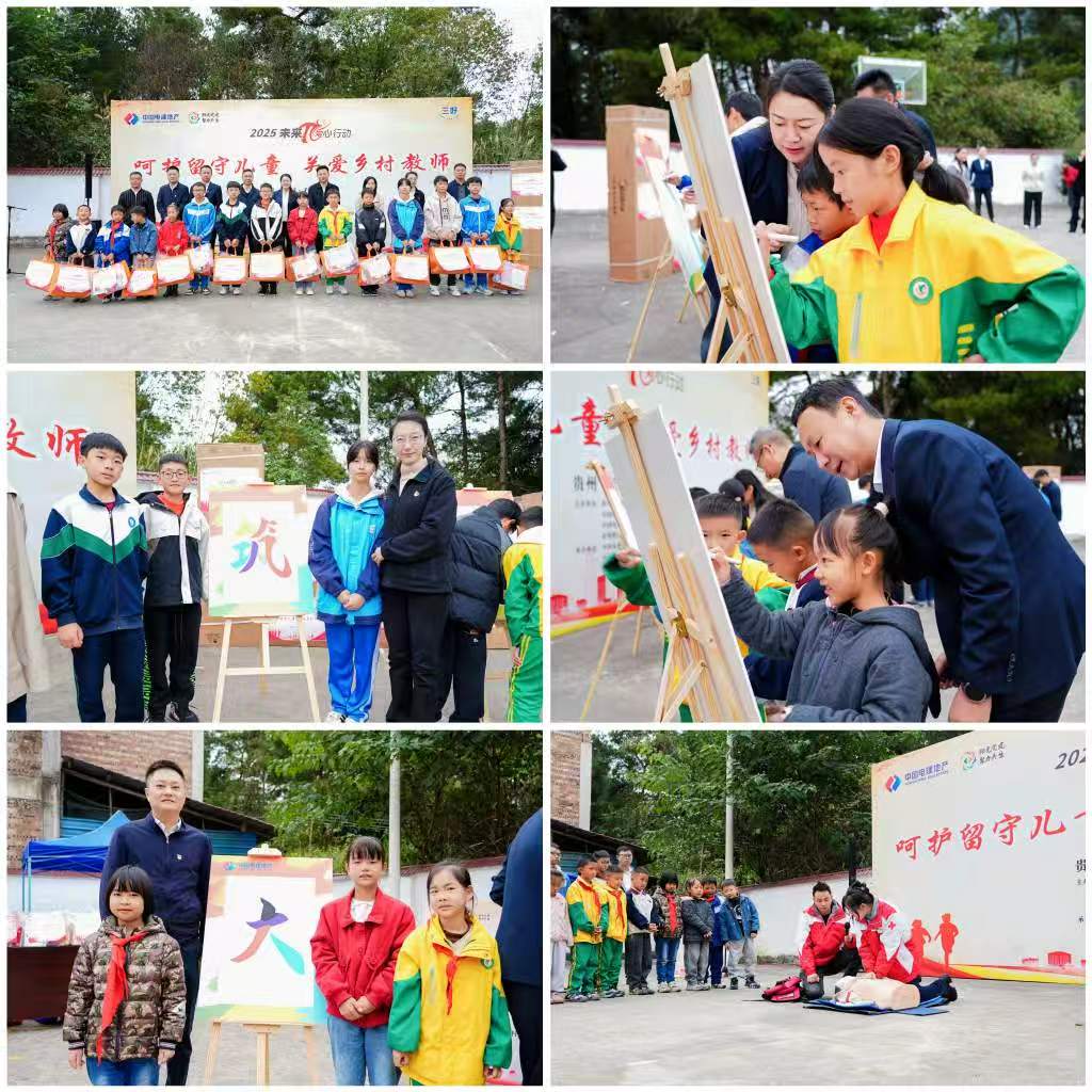 本次活動(dòng)從“安全守護(hù)、物資幫扶、陣地升級(jí)”三個(gè)維度為石板村提供全方位關(guān)愛。貴州省紅十字會(huì)資深老師受邀為留守兒童開展“防溺水與應(yīng)急包扎”安全教育課,通過理論講解與實(shí)際操作,幫助孩子們掌握實(shí)用的安全防護(hù)技能。在互動(dòng)環(huán)節(jié),領(lǐng)導(dǎo)和孩子們共同參與“大國(guó)基建 為民筑城”主題背景板涂色創(chuàng)作,用色彩傳遞守護(hù)與溫暖,并在協(xié)作中理解公益內(nèi)涵。