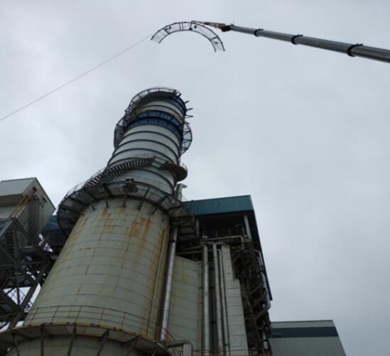 晉江氣電#1余熱鍋爐煙囪平臺(tái)斜撐更換順利完成起吊工作
