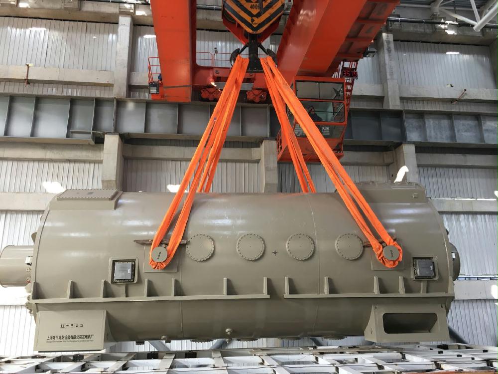 鎮(zhèn)江燃機(jī)工程1號機(jī)發(fā)電機(jī)定子就位