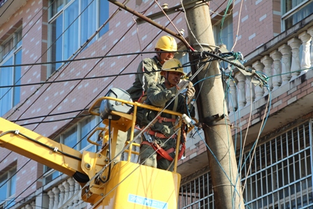 15:30分,在各組人員的努力下,一切準備工作就緒,作業(yè)人員開始進行“站隊三交”,進行安全措施布置,對受損電桿做防倒措施。