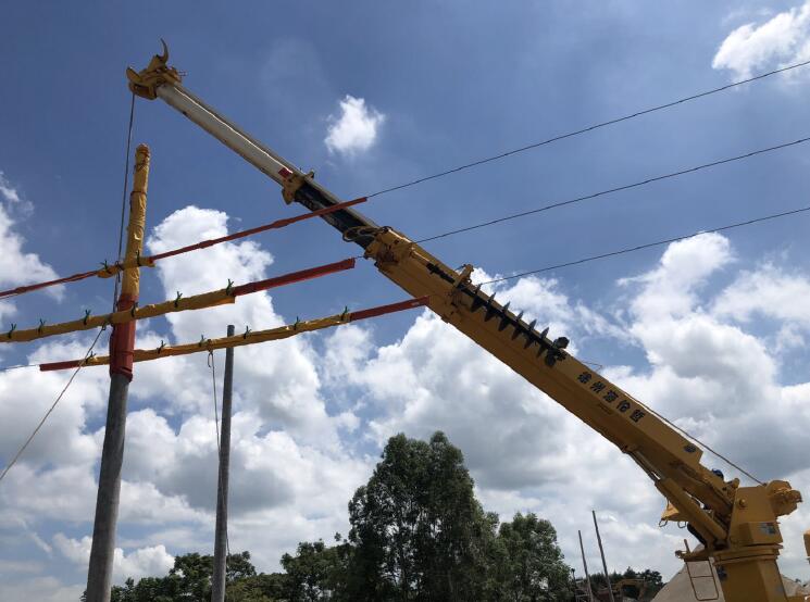 拉開三相導線、用黃色絕緣護具遮蔽電桿桿頂、吊車進駐現場……現場安全監(jiān)護、地面配合人員按照事先制定的作業(yè)方案有序配合。“右邊一點,好!慢慢向上移……”12時 20分,穿上“黃馬褂”的水泥電桿被吊臂車緩緩拉起、立直;確認調整好后,工作人員迅速開始回填電桿桿坑。經過三個半小時的緊張作業(yè),帶電線路的“虎口”間被成功種下了一枚“水泥牙”,該局帶電組立電桿作業(yè)順利結束。