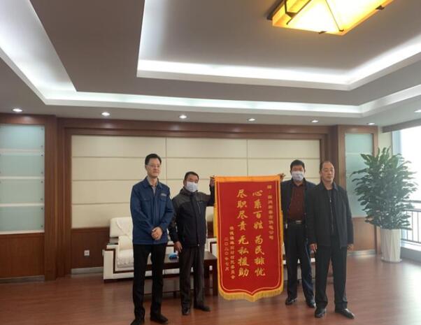 11月25日一大早,樓德鎮(zhèn)埠前村村民將一面繡有“盡職盡責(zé)無私援助心系百姓為民排憂”的錦旗送到國網(wǎng)新泰市供電公司總經(jīng)理賈政起手中。對供電公司長期以來的優(yōu)質(zhì)服務(wù)及服務(wù)地方經(jīng)濟發(fā)展助力該村新農(nóng)村建設(shè),以最快速度遷改線路等行為表示感謝。