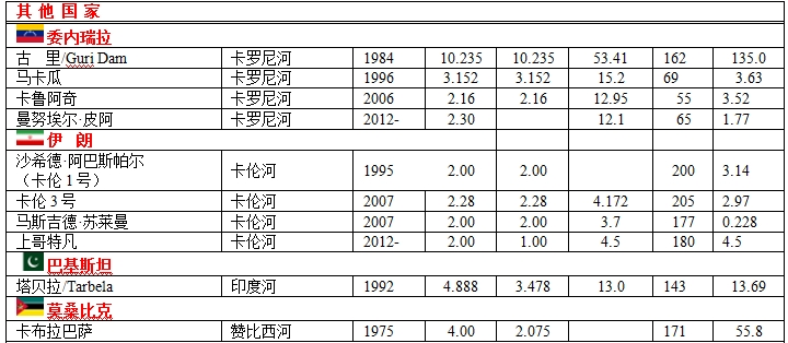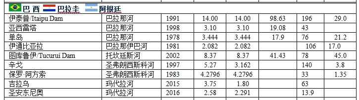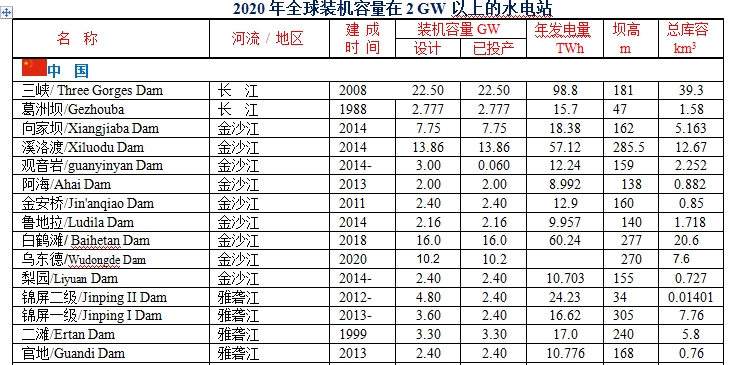 梯級(jí)水電站是世界上發(fā)展水力發(fā)電的一個(gè)重要的獲取電力的方式。在制作下表時(shí),我把相同一河流的水電站歸納在一起,您可以看出,世界上許多河流都是梯級(jí)水電站。
