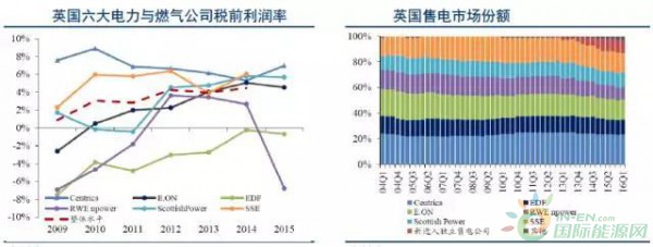 整個英國由3家輸電網(wǎng)公司負(fù)責(zé)區(qū)域性輸電網(wǎng)絡(luò)。在配電網(wǎng)層面,英國被劃分為14個區(qū)域并由6大配電網(wǎng)公司(DNOs)運(yùn)營。配電公司作為獨(dú)立于輸電和售電環(huán)節(jié)的中間人,通過運(yùn)作其擁有的配電網(wǎng)絡(luò)將輸電網(wǎng)傳輸?shù)碾娏Ψ峙浣o民用和工商業(yè)用戶。但是配電公司并不參與售電的環(huán)節(jié)。與發(fā)電、輸電和配電公司不同的是,英國電力供應(yīng)商被定義為支付配電網(wǎng)絡(luò)費(fèi)用并從電力批發(fā)市場中購買電力,再以一定價格出售給自己顧客的商業(yè)實(shí)體。
