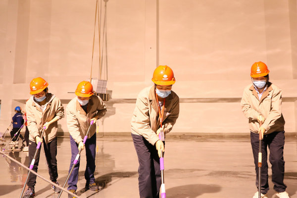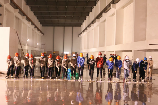 在到達(dá)位于汽機(jī)房17米平臺(tái)的GIS室后,女職工明確分工,協(xié)同配合,裝水、噴水、清掃、沖水、拖地……分區(qū)域、分小組地對(duì)GIS室地面進(jìn)行清潔。當(dāng)大家看著地面從塵土漫漫逐漸變成干凈整潔的地面,干凈的面龐已是塵土夾雜著汗水,臉上的笑容依舊如初,勞動(dòng)的成就感,為工程建設(shè)作出力所能及貢獻(xiàn)的自豪感充溢著大家的內(nèi)心。經(jīng)過(guò)兩個(gè)多小時(shí)的勞動(dòng),順利完成了600平方米GIS室地面的清潔。
