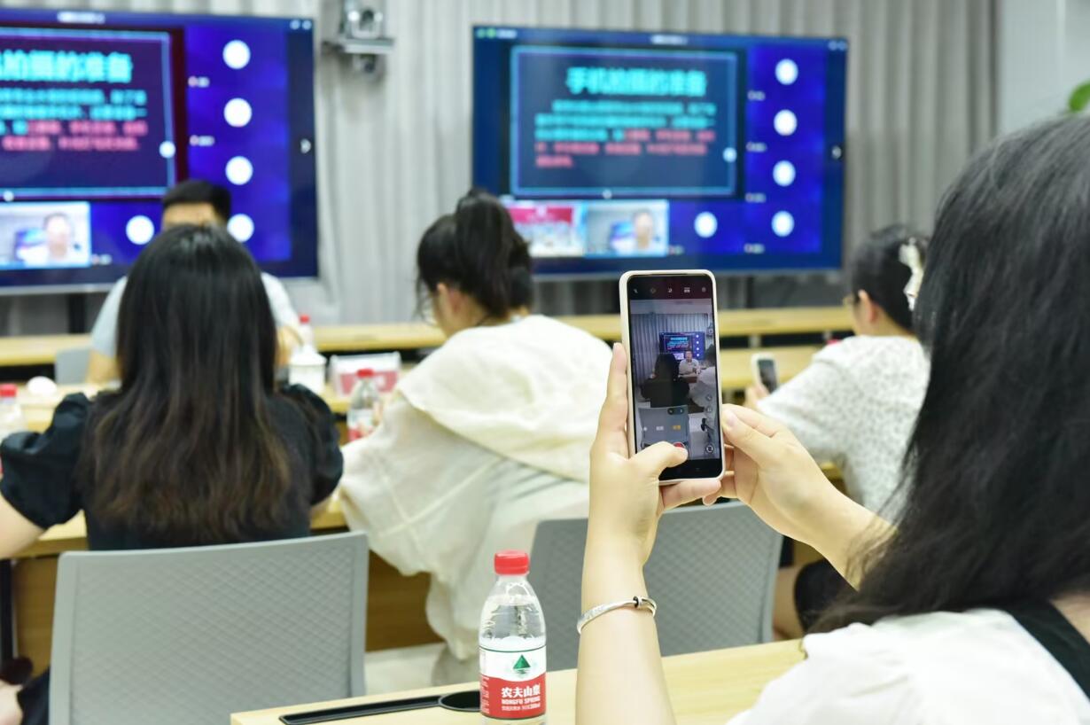 培訓(xùn)采取“線上+線下”的方式,培訓(xùn)中,丁老師運用“理論+案例+實操”的方法,以大量優(yōu)秀作品為例,結(jié)合自身長期以來從事短視頻創(chuàng)作實戰(zhàn)經(jīng)驗,從手機(jī)拍攝的景別選擇、光線調(diào)整、畫面構(gòu)圖等方面對拍攝知識進(jìn)行了詳細(xì)講解與分析,同時為大家推薦了幾款視頻剪輯軟件,并鼓勵大家,拍攝一定要勇于嘗試、敢于試錯,盡情在實踐中不斷嘗試各種技巧和方法,有效提升參加學(xué)員的興趣和熱情。學(xué)員們紛紛表示,這次培訓(xùn)受益匪淺,在今后的工作和生活中,將學(xué)以致用,不斷探索提升,用更加專業(yè)的水平記錄工作和生活中的影像。課程最后,老師還與學(xué)員們就手機(jī)拍攝與制作過程中遇到的各種問題進(jìn)行了交流。
