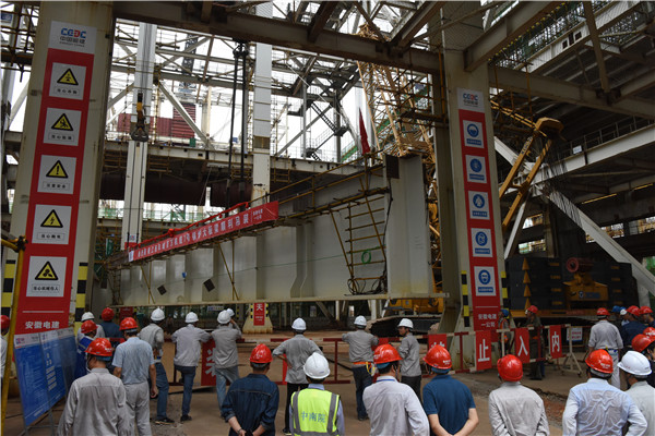中國電力網(wǎng)訊 2020年8月10日13:28,隨著現(xiàn)場吊裝總指揮員一聲哨響,江西贛能股份有限公司豐城電廠三期擴建工程#7鍋爐大板梁開始吊裝,標(biāo)志著該工程#7鍋爐鋼結(jié)構(gòu)主體安裝基本完成,并順利進入鍋爐受熱面安裝階段。