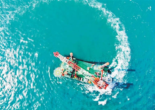 12月16日,由中國(guó)鐵建港航局集團(tuán)有限公司投資打造的國(guó)內(nèi)首艘1300噸自升自航式風(fēng)電安裝船“鐵建風(fēng)電01”在江蘇啟東交付使用。圖為“鐵建風(fēng)電01”大回轉(zhuǎn)試驗(yàn)。陳耀金攝(中經(jīng)視覺(jué))