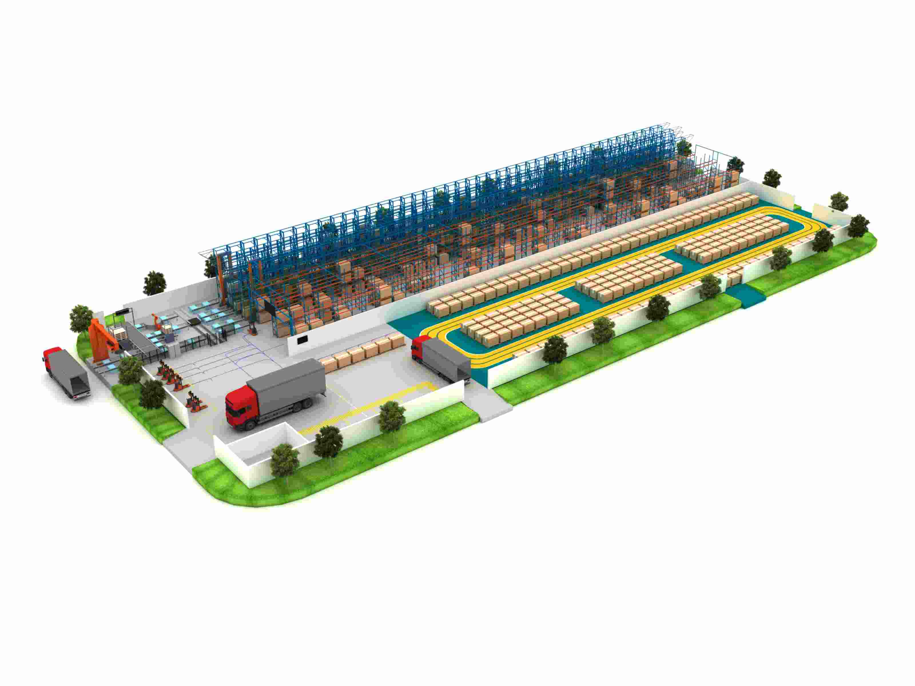 王亞華還介紹道,未來浙東物流中心基地建筑層高14米,屬于中層智能倉(cāng)庫(kù),對(duì)建筑以及倉(cāng)儲(chǔ)機(jī)械設(shè)備的要求不高,造價(jià)合理。規(guī)劃有四向車立體庫(kù)、AGV橫梁貨架立體存儲(chǔ)區(qū)、料箱AGV存儲(chǔ)區(qū)、無人值守倉(cāng)、室內(nèi)平置區(qū)、線纜智能切割區(qū)、室外堆場(chǎng)及倉(cāng)儲(chǔ)功能區(qū),不僅提高空間利用率,而且可以利用先進(jìn)的物流系統(tǒng)提高物資供應(yīng)時(shí)效,化靜態(tài)存儲(chǔ)為動(dòng)態(tài)存儲(chǔ),加快貨物存取,提高周轉(zhuǎn)效率。