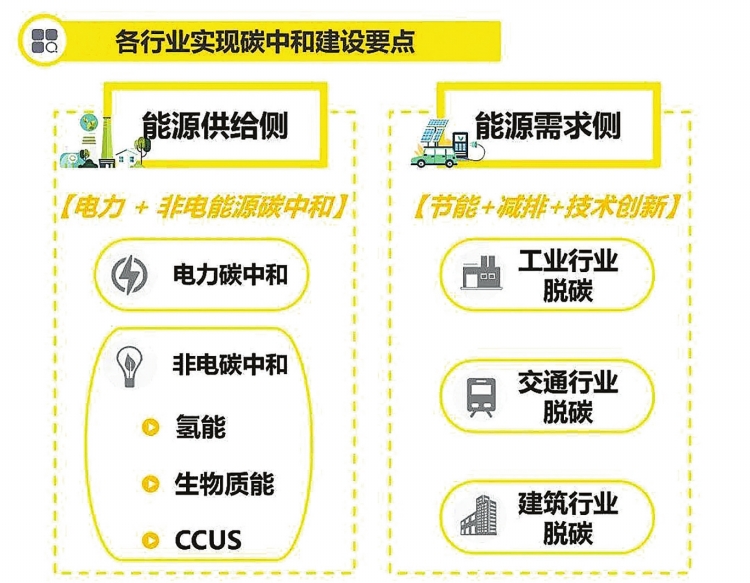 其次,要大力節(jié)能并加速能源體系低碳化。煤炭是化石能源消費(fèi)的主體,煤炭燃燒產(chǎn)生的二氧化碳占我國二氧化碳排放總量70%以上,近期能源結(jié)構(gòu)轉(zhuǎn)型的重點(diǎn)在于嚴(yán)格控制煤炭消費(fèi),“減排是實(shí)現(xiàn)碳中和的重要途徑。只有碳排放量減少到一定程度,才有通過負(fù)排放手段實(shí)現(xiàn)中和的可能性。”