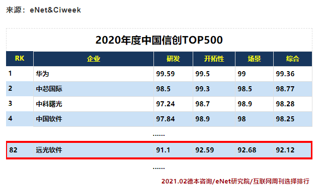 2020年度中國(guó)信創(chuàng)TOP500完整名單: