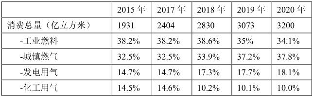 天然氣消費結(jié)構(gòu)是指天然氣利用的鄰域。天然氣作為工業(yè)燃料和城鎮(zhèn)燃氣,在中國一直占據(jù)重要地位,特別是城鎮(zhèn)民用燃料呈現(xiàn)逐年上升的趨勢。中國的燃氣發(fā)電在全球居第三位,用氣量也呈現(xiàn)快速上升。中國是一個農(nóng)業(yè)生產(chǎn)大國,因此化肥生產(chǎn)一直占據(jù)重要地位,近年約有下降但產(chǎn)量卻上升。